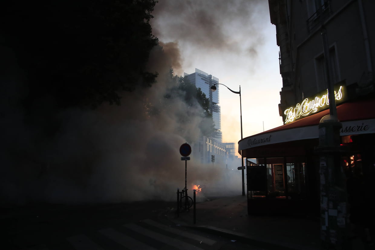 Les rues de Paris sous la fumée, après les incidents de fin de soirée