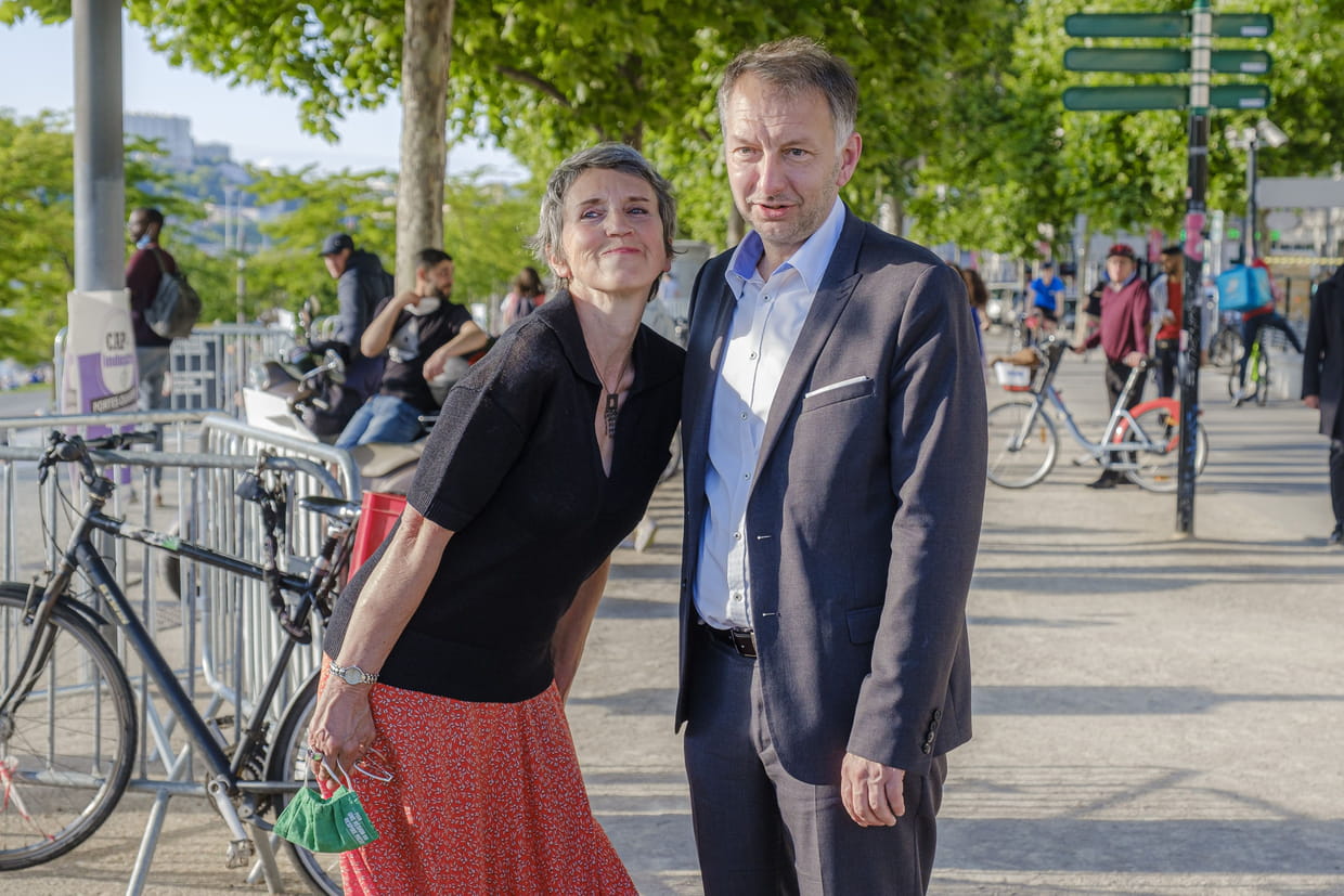 Fabienne Grébert, candidate EELV aux élections régionales en Auvergne-Rhône-Alpes, et Bruno Bernard, le 26 mai à Lyon.