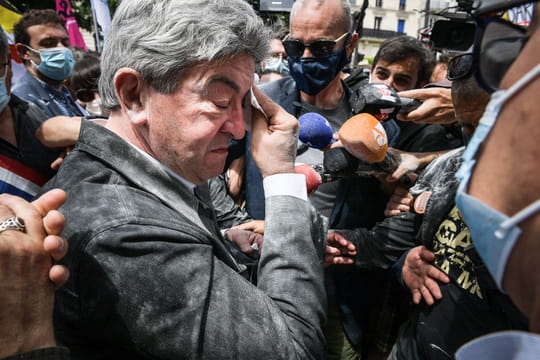 Alors que la "Marche des Libertés", la manifestation contre les idées d'extrême droite allait démarrer Place de Clichy à Paris, et que Jean-Luc Mélenchon répondait aux questions de la presse, un jeune homme lui a jeté de la farine au visage avant d'être repoussé par le service d'ordre de la CGT.