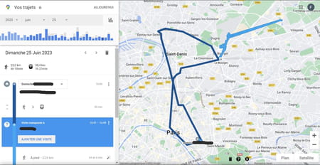 Le menu en haut à gauche permet de remonter le temps. En choisissant une date précise, vous verrez les activités et lieux visités ce jour-là. Il y a quelques années, il était aussi possible de voir les photos qui avaient été prises, même si celles-ci avaient déjà été supprimées du téléphone. Vous pouvez même ajouter des précisions sur ce que vous avez fait et corriger les informations. L'outil en bas permet de visualiser les lieux visités par ordre de fréquence ou encore de regarder les voyages effectués. Le site dispose aussi d'une icône corbeille qui permet de supprimer tout l'historique.