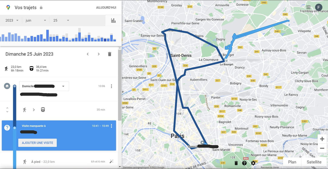 Le menu en haut à gauche permet de remonter le temps. En choisissant une date précise, vous verrez les activités et lieux visités ce jour-là. Il y a quelques années, il était aussi possible de voir les photos qui avaient été prises, même si celles-ci avaient déjà été supprimées du téléphone. Vous pouvez même ajouter des précisions sur ce que vous avez fait et corriger les informations. L'outil en bas permet de visualiser les lieux visités par ordre de fréquence ou encore de regarder les voyages effectués. Le site dispose aussi d'une icône corbeille qui permet de supprimer tout l'historique.