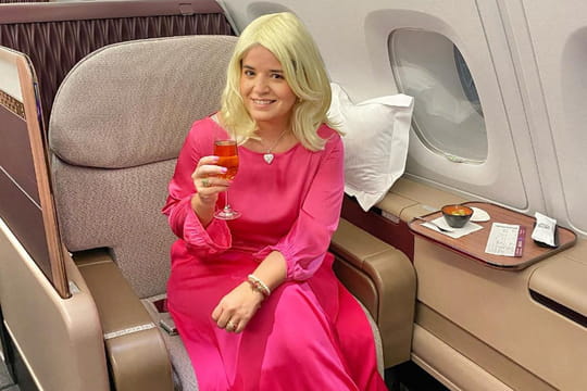 Lays Laraya, également connue sous le pseudonyme @skywardsfreak sur Instagram, est une voyageuse assidue qui part presque tous les week-ends. Cette influenceuse voyage partage en temps réel ses expériences, qu'elles soient positives ou négatives, et elle adore se déguiser pour prendre l'avion. Ce week-end, elle a voyagé de Doha (Qatar) à Perth (Australie) en première classe à bord du vol A380 de Qatar Airways, vêtue d'une tenue Barbie.