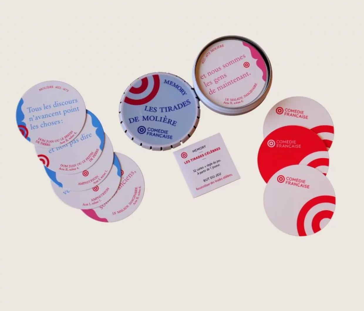 Pour tous les amoureux du théâtre, la mythique Comédie-Française propose sur son e-shop quelques produits culturels à glisser sous le sapin. Comme ce jeu de memory au cours duquel il faut reconstituer les tirades célèbres des pièces de Molière (existe aussi en édition globale autour de diverses pièces). Prix : 12,50 euros. Où l'acheter : en ligne sur la boutique de la Comédie-Française.