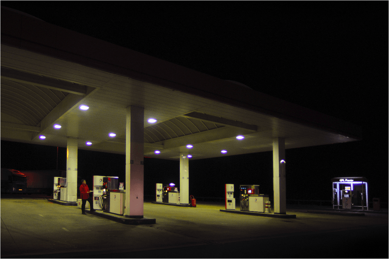 Marc, pompiste dans une station-service, autoroute de Normandie, France, 2008