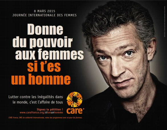 A l’occasion de la Journée internationale des femmes, le 8 mars, l’ONG humanitaire CARE France fait de même et appelle les hommes à se mobiliser pour les droits des femmes. "Donne du pouvoir aux femmes, si t’es un homme" : voici le slogan de cette campagne, dont Vincent Cassel et Léa Seydoux sont les ambassadeurs.