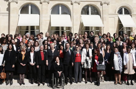 "Elles font la France". C'est sous ce mot d'ordre que François Hollande a reçu 100 femmes à l'Elysée dimanche 8 mars. En compagnie de Pascale Boistard, secrétaire d'Etat aux Droits des femmes et de Marisol Touraine, le président de la République a mis le doigt sur les inégalités que doivent encore surmonter les femmes : l'accès aux responsabilité, les salaires, l'orientation scolaire...