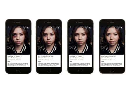 Cette fraction reflète la part de femmes dans le monde qui ont déjà vécu une agression physique ou sexuelle. Pour choquer et faire connaître cette proportion, les utilisateurs d'Happn verront apparaître le 8 mars sur leur timeline le profil d'une femme dont "la première photo la montrera contusionnée, suivie de trois autres photos illustrant sa guérison" : des images poignantes et pertinentes. Outre ce message visuel, il est aussi possible de faire un don à l'organisation Equality Now ou de prendre part à la conversation sur cette question des violences faites aux femmes. Comme le rappelle Didier Rappaport, CEO et co-fondateur de l'application : "Cette Journée Internationale de la Femme est une nouvelle opportunité pour les gouvernements d'agir concrètement en ce sens, en révisant leur législation et en supprimant toutes les lois contribuant à perpétuer ces violences ou discriminant les femmes".