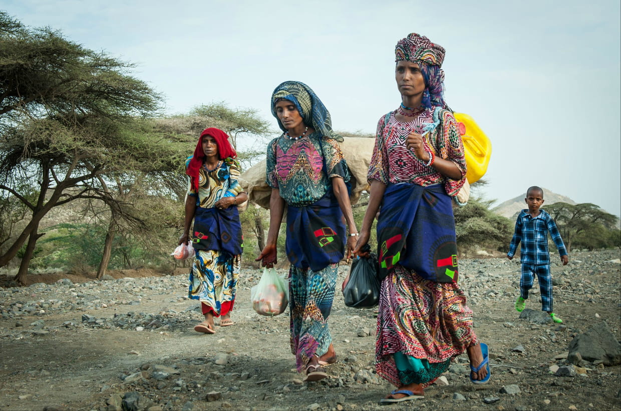 Pendant que les hommes s'occupent du bétail, les femmes et les enfants ont pour responsabilité de ramener de l'eau au village pour nourrir leur famille. Ils peuvent marcher jusqu'à 12h par jour pour trouver un point d'eau et revenir au camp, le tout sous un soleil de plomb. Un fardeau pour les femmes, surtout pour les plus âgées et celles qui sont enceintes.