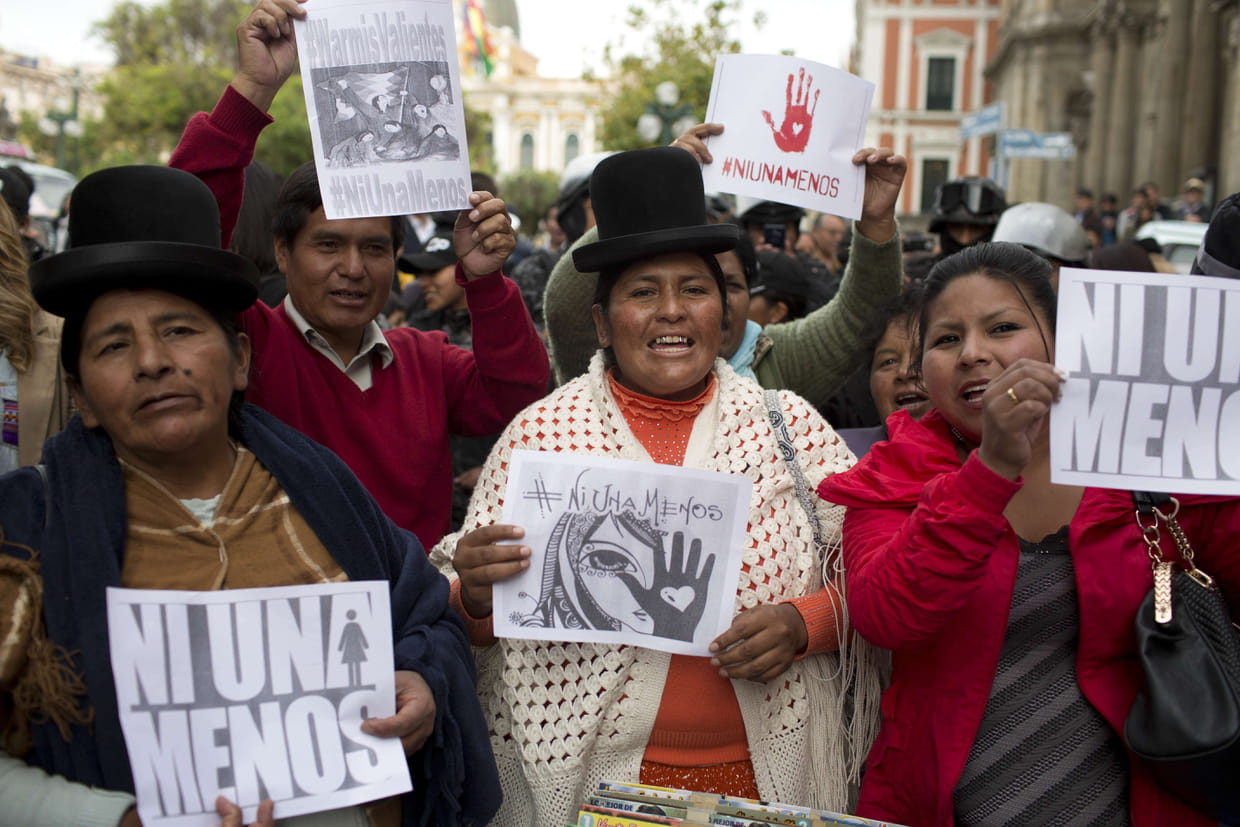 Des femmes aymara, de la région du lac Titicaca, sont descendues dans les rues de La Paz pour protester contre les violences sexistes. Leur slogan : "pas une de moins".