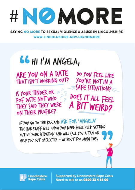 PLAN B - Dans le Lincolnshire, un comté d'Angleterre, les femmes peuvent à présent "demander Angela" dans les bars et boîtes pour se sortir d'un rendez-vous embarrassant ou d'une situation de harcèlement.