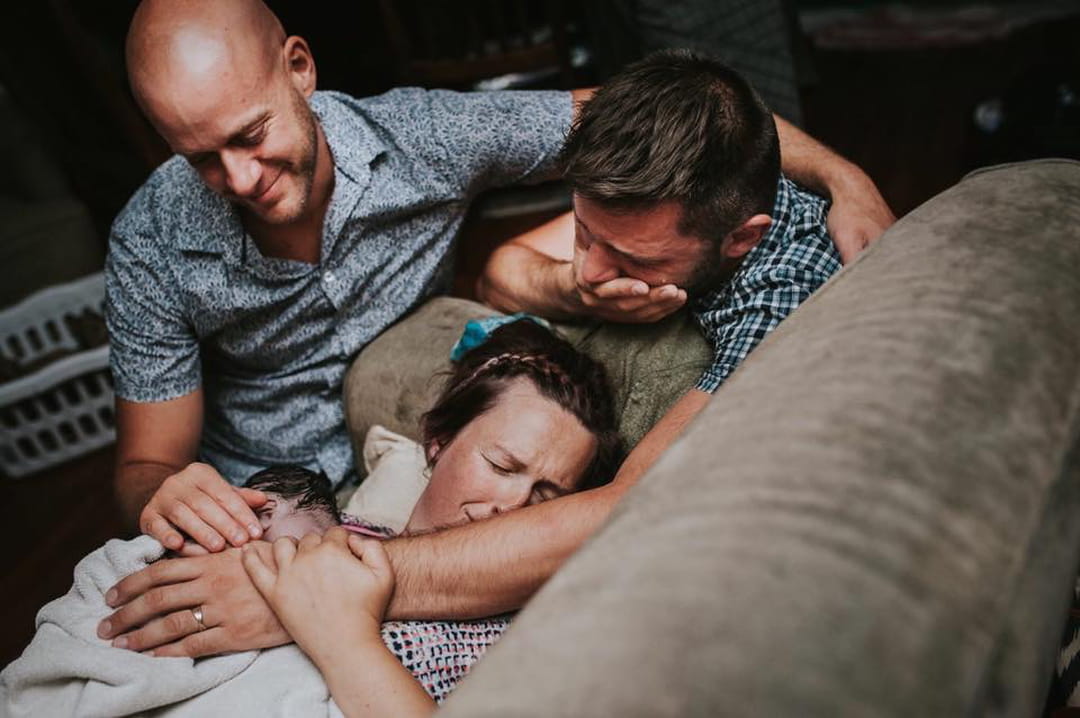 Ils sont venus au Canada alors que j'avais atteint ma 37e semaine de grossesse, mais leur charmant petit garçon n'a montré le bout de son nez qu'au bout de la 41e. La naissance de Valentin en 2017 a été simplement un pur moment de bonheur. Samuel et Jean-Raphaël étaient à mes côtés quand le bébé est né entouré d'amour et de joie", raconte Angie.