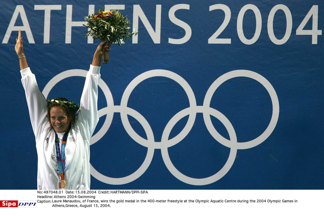 Une fois la tête sortie de l'eau, Laure Manaudou lève les bras et ses ongles peints en bleu blanc rouge au ciel. Derrière ses lunettes aux verres bleutés, on ne distingue pas son regard. Pas d'explosion de joie. Mais un accomplissement qu'elle est venue chercher avec force et détermination. Dans les tribunes, ses parents, Jean-Luc et Olga, et ses frères, Nicolas et Florent, exultent. Couronne de lauriers dans les cheveux, Laure Manaudou savourera sa Marseillaise sur le podium : "J'étais venue à Athènes avec l'objectif de remporter cette finale. Je m'entraîne depuis trois ans pour cette journée. Je suis heureuse, bien sûr. Mais surprise, pas vraiment, car je savais que le titre était à ma portée", expliquera-t-elle aux médias. "Laure olympique", titre le journal l'Équipe au lendemain de cette victoire historique. Mais la nageuse a encore de l'appétit. À Athènes, elle décrochera deux autres breloques : l'une en argent sur le 800 m nage libre, l'autre en bronze sur le 100 m dos. Une star est née.
