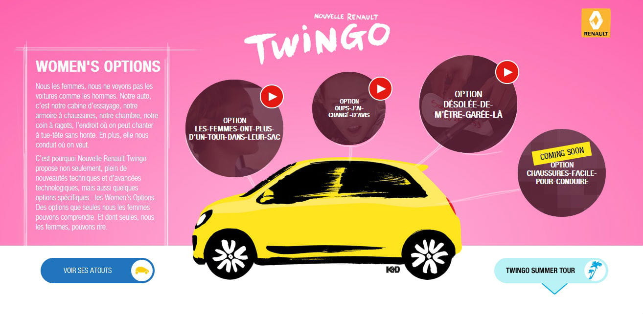 La dernière Twingo, une petite voiture citadine est principalement destinée à la gent féminine, mais est-ce une raison pour appuyer une fois de plus les stéréotypes sur les femmes au volant à coup de stratégie marketing ratée ?