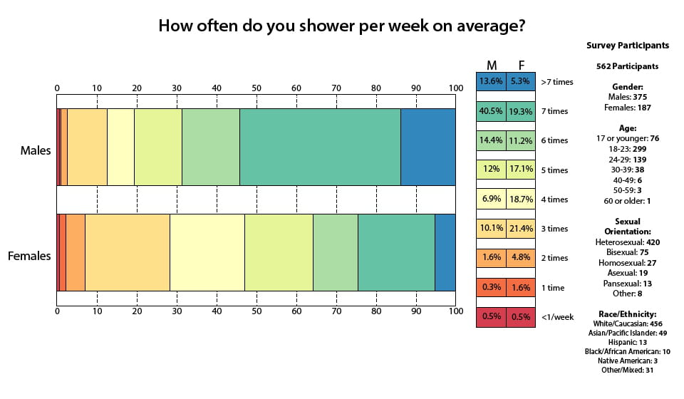 D’après l'étude relayée par cette plateforme, 40% des hommes se laveraient tous les jours contre… 19,3% des femmes seulement ! Le site web communautaire, qui permet aux utilisateurs de soumettre leurs liens et de voter pour ces liens proposés par d’autres utilisateurs, avance même que nous ne ressentirions le besoin de nous laver que trois fois par semaine. Ne serait-ce pas pousser le bouchon (de gel douche) un peu trop loin ? On n'y croit pas une seconde, foi de maniaque de la propreté !