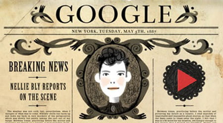 Le 5 mai 1864, Nellie Bly, pionnière du reportage clandestin et du journalisme d'investigation, venait au monde. A l'occasion de son 151° anniversaire, Google lui consacre son doodle du jour.