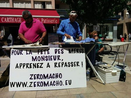 Ce n'est pas une revendication féminine ou féministe, c'est statistique : les hommes réalisent beaucoup moins de corvées domestiques que les femmes. Pour le partage des tâches ménagères (contre le système "prostitueur" et pour l'égalité des sexes), le réseau international d'hommes engagés de l'association Zéromacho se mobilise. Leur slogan ? "Pour la Fête des Mères, monsieur, apprenez à repasser ! Homme ne te froisse pas, repasse ! Ici, un homme apprend à repasser".