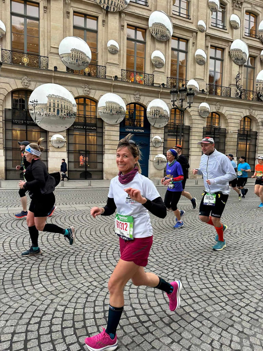 En 2022, j'ai commencé par courir deux semi-marathons. Et je me suis dit : "Un semi + un semi = un marathon, on signe où ?" Mon premier marathon a été celui de Nice-Cannes fin 2022. Ça a été difficile. J'ai dû gérer une petite blessure sur la fin de ma préparation, il faisait très chaud, j'ai couru seule, mais mon objectif était d'avoir la médaille à la fin. Je termine en 4h48. Dans la Team des Ducs, j'ai la réputation de gagner des dossards. Je participe souvent à des concours sur Instagram. Après ce premier marathon, j'ai remporté deux dossards pour participer au semi de Paris et un autre pour le marathon de Paris 2023. J'ai enchaîné. Et là, j'ai pris un plaisir incroyable. Je revenais de ma première prépa, je n'étais pas remise, mais j'étais sur mon nuage. Je voulais le boucler en 4h30 et j'ai mis 4h12, ce qui était un véritable exploit pour moi. À ce moment-là, je me suis dit : "C'est ça ma vie, maintenant, je veux voyager et faire un marathon par an."
